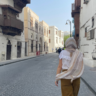 Nell’aria dicono ci sia sempre profumo d’incenso - ed è vero, io non ho mai smesso di sentirlo! - e nei vicoli stretti e deserti che bruciano di sole si alternano giochi di luce che si riflettono su edifici storici bellissimi che spezzano la linea ordinaria di costruzioni decadenti. La città vecchia è un intreccio di case e strade, piccole piazze e minareti, e dalle botteghe uomini e donne osservano curiosi e sorridenti questo nuovo mondo che è venuto a scoprirli. Gli storici sostengono che le origini della città abbiano radici antiche che risalgono a oltre 2.500 anni fa quando Jeddah era solo un villaggio di pescatori affacciato sul Mar Rosso.