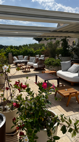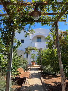 In questo luogo dove soprattutto la natura è protagonista, il giardino mediterraneo che profuma di capperi e lavanda è l'angolo perfetto in cui rifugiarsi. Tra gli ulivi è nascosta, quasi come protetta in un abbraccio, una piccola pajara che un tempo era il posto in cui riporre gli attrezzi per la terra. Ogggi appare quasi come "un luogo spirituale", simbolo di pace interiore e riflessione e al calar del sole l'atmosfera è incredibile.