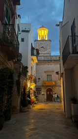 Arroccata su tre colli e dominata dal candore abbagliante delle sue case imbiancate a calce, Ostuni è un gioiello che brilla sotto il sole della Puglia ed è una delle mete più affascinanti della regione. Di giorno è stupenda ma al tramonto e di sera c'è un'atmosfera fantastica. Il centro storico è un labirinto di vicoli tortuosi, archi e scalinate che conducono a piccole piazze e cortili nascosti. Le case bianche creano un contrasto straordinario con il blu del cielo e con i colori vivaci delle porte e dei fiori che adornano i balconi. In questo giro mi sono fermata a cena da Gabò, ristorante carinissimo dove si mangia davvero bene. E poi, immancabile Riccardo Cafè, l'Anema e Core di Ostuni.